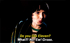 That's precious. He looks out for Eleven, she breaks a kid's arm for him and saves him from jumping off a cliff... That's usually how all middle school romances start out, right? At least they do in Hawkins.