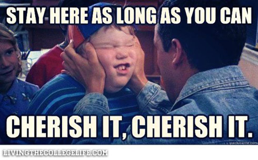 Now that college students are officially back on campus, I'm seeing a lot of Facebook statuses, photos and Snapchats about school. Having recently graduated, I've pretty successfully been in denial for the summer about not going back to college. But now that people are back, going to classes, going out and having fun, it's something that is staring me directly in the face again. No more denial. I'm not going back.