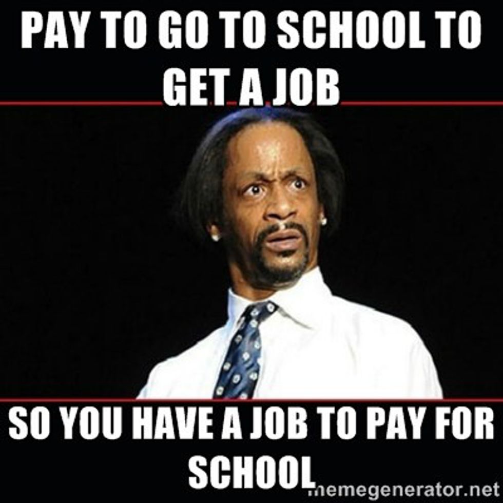 Now that you've got some student loans and are close to getting a degree you realize you will be in debt for what feels like the rest of your life. Paying back an insane amount of student loans all with incredible amounts of interest can send someone into a panic, not to mention trying to find a sustainable job to live off of and pay the loans back. This is when you realize there is a lot of Ramen Noodles and Spagettios in your future.
