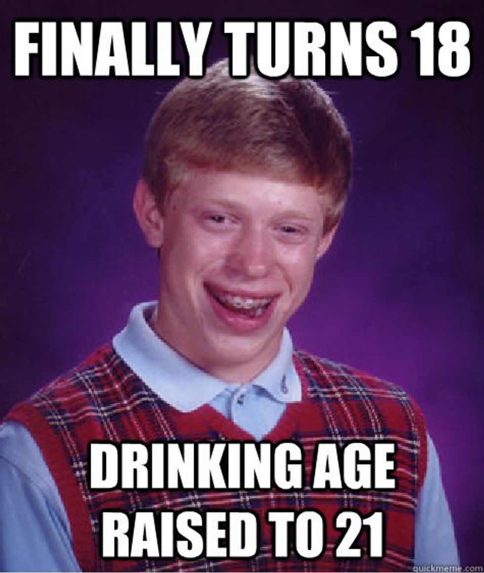 When you turn 18 you are considered an adult in the United States but you can't drink, get a loan, buy a house, or even rent an apartment without a co-signer in most cases. It is so frustration trying to "adult" when you can only do some things. Until you are 21 you are basically still a kid, you just have to work, pay taxes, vote and fight for your country.