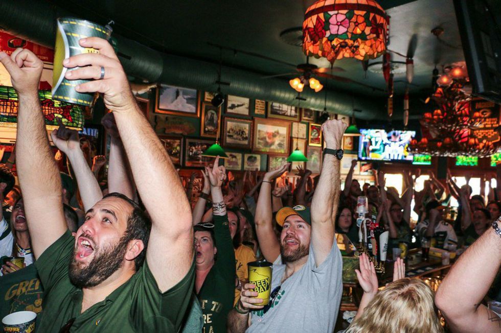 Every bar in Wisconsin looks similar to this during a Packer game, complete with fans decked out in their finest green and gold apparel (and their alcoholic beverage of choice in hand).