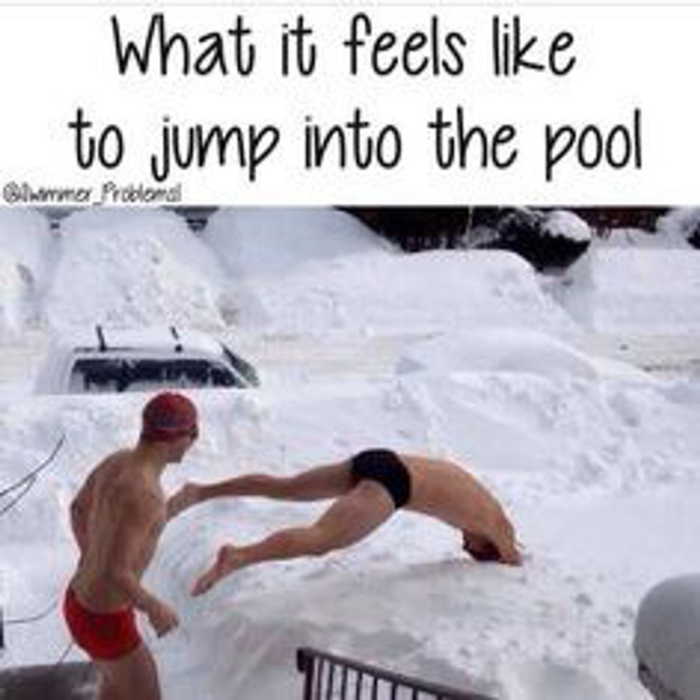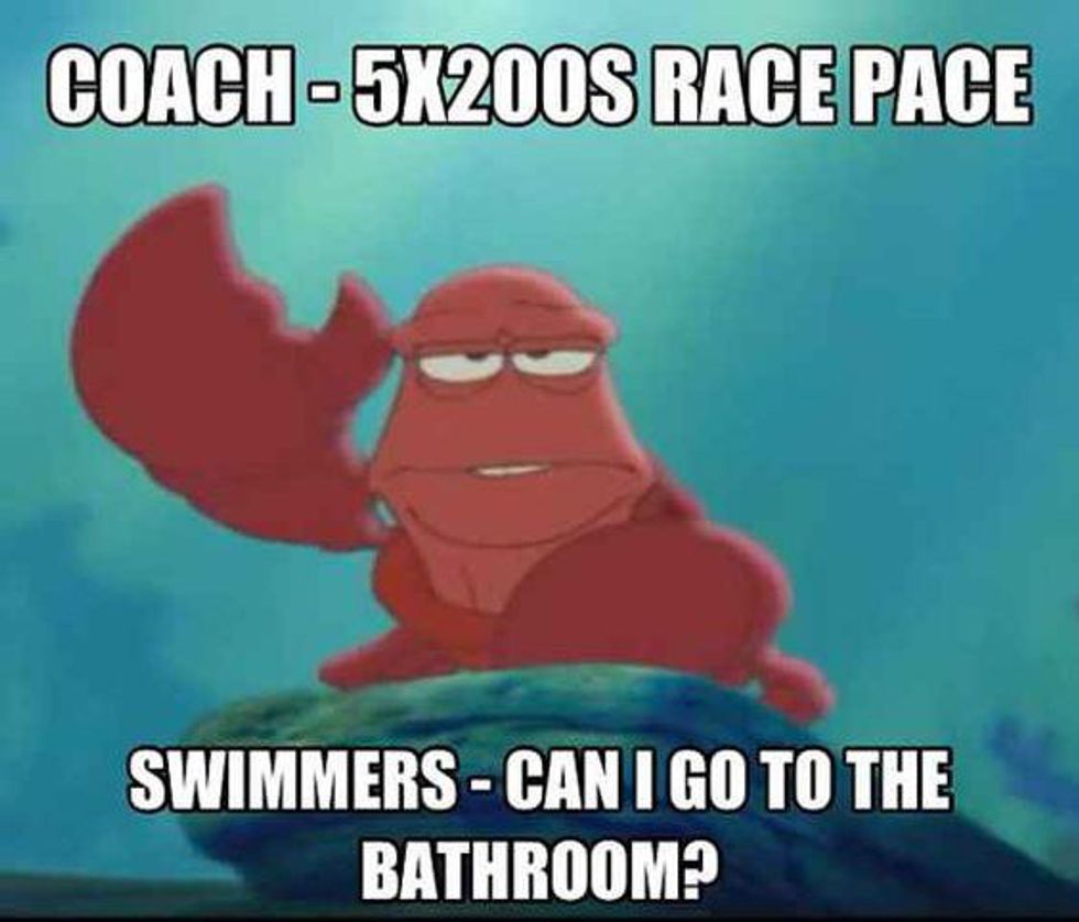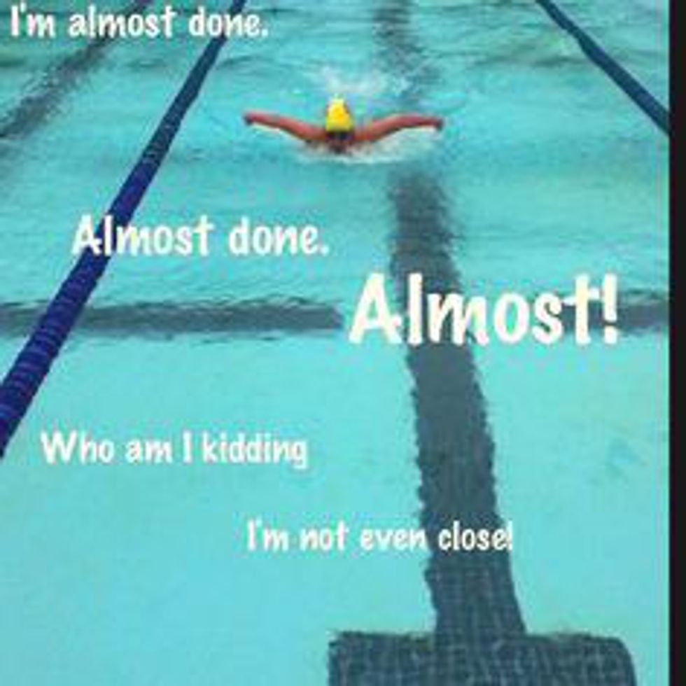 I've been a competitive swimmer for thirteen years (don't you go thinkin' I'm some great swimmer though). And with those years of experience I've learned that a majority of swimmers usually think the same during practice. So I've decided to compile a list of the top things swimmers are thinking about during practice!
