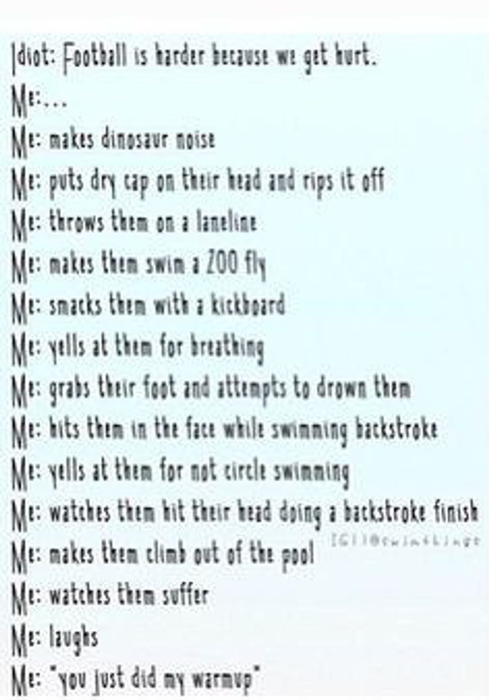 4. When someone who hasn't swam before talks about racing you...