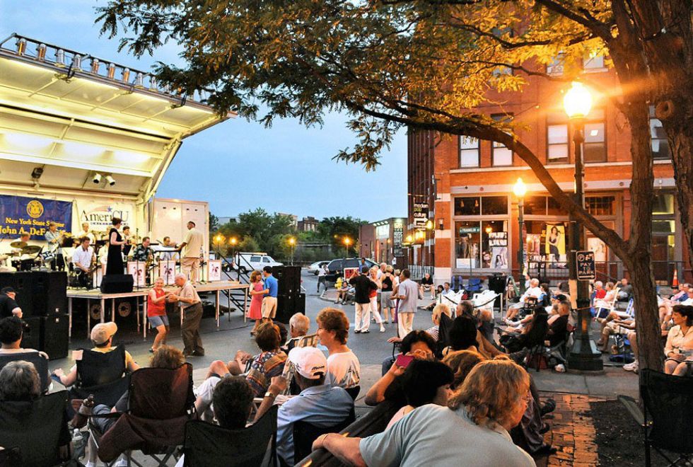 My favorite place to watch the fireworks because of all the good vibes from so many people, the theater has concerts all throughout the summer and right on the Seneca river.
