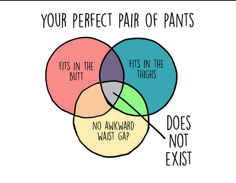 People complain that my jeans look painted on, but if I got them any bigger, they'd hang off of my waist. If they fit in the butt, they don't fit in the waist. And the fit in the thighs are a whole different story. You can't have it all.