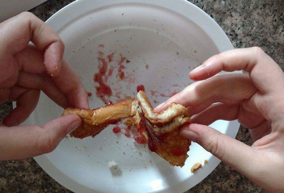 Grilled peanut butter and jelly sandwiches are an amazing food. The only negative is that they are exactly like burritos. The jelly spills all over your hands, makes things sticky, and is one of those awkward mess foods. As good as this food item is, save it for a later date.