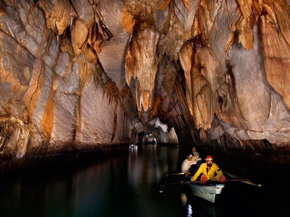 On Palawan, one of the hotspot tourist islands, in the city of Puerto Princesa, lies a beautiful and mysterious underground river that many people still visit in wonder to this day. Helmets and lifejackets are to be worn for safety, one person holds a large flashlight to light the way, and a guide sits at the front, telling historical stories about the cave's origins. Bats fly overhead and voices echo in this underground wonder as you float beneath it all.