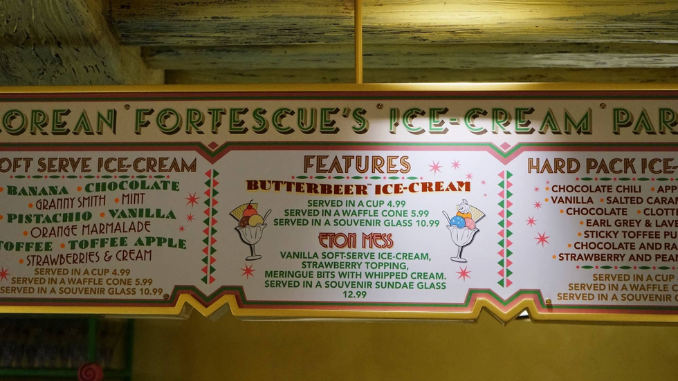 Walking all over a theme park can make you really tired, especially in the Florida heat, so cool off at Florean Fortescue’s Ice Cream Parlour. As with everything else in Diagon Alley, this isn’t your normal ice cream shop. Yes, you can be vanilla and stick with vanilla, or you can become a part of the magical atmosphere and go out on a limb with earl grey and lavender or orange marmalade. Of course, you are always welcome to get butterbeer flavor as well.