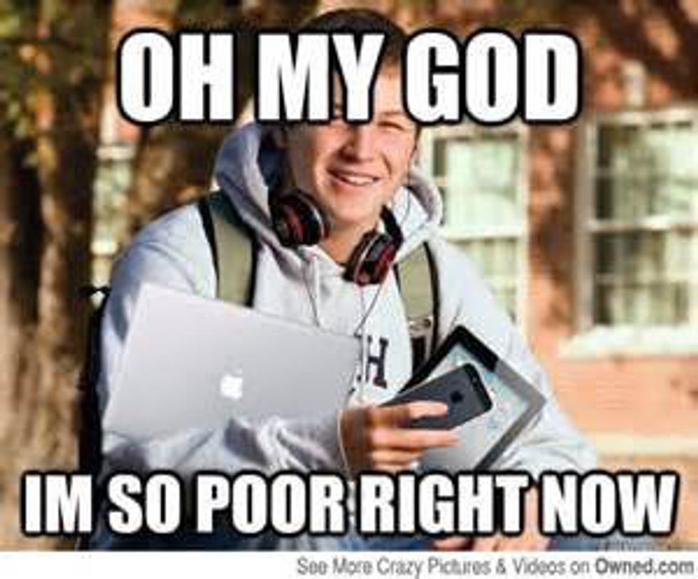 Everyone in college is spending money that they don't have. Instead of complaining about being poor, try solving the issue.