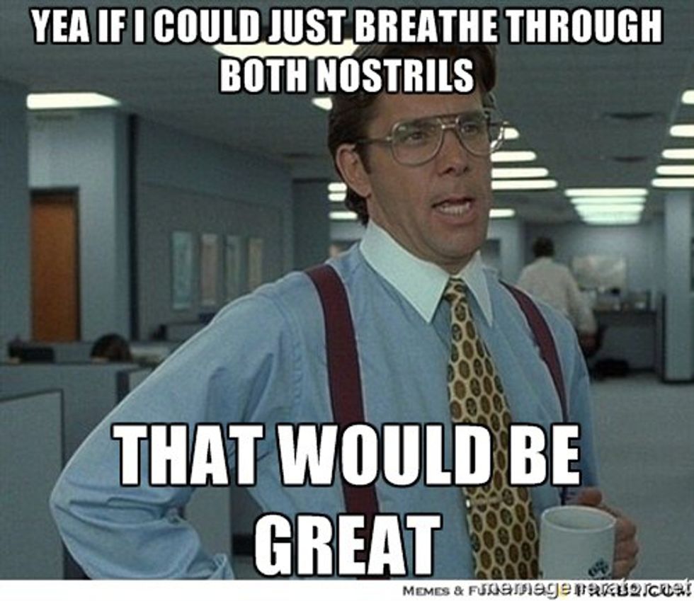 We have all been there. We probably all hate it too. Breathing out of one nostril is the literal worst. I can't really describe it, it is just annoying. You just want to be able to breathe out of both nostrils... In the end, equality for all, right?
