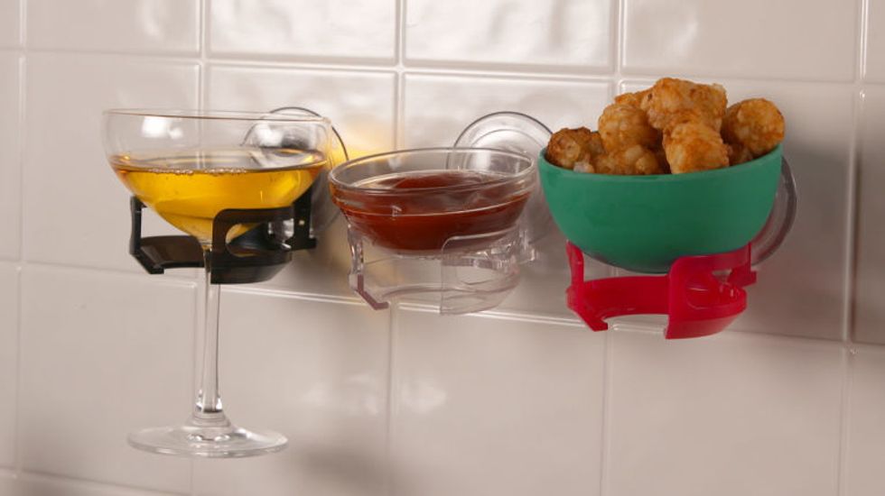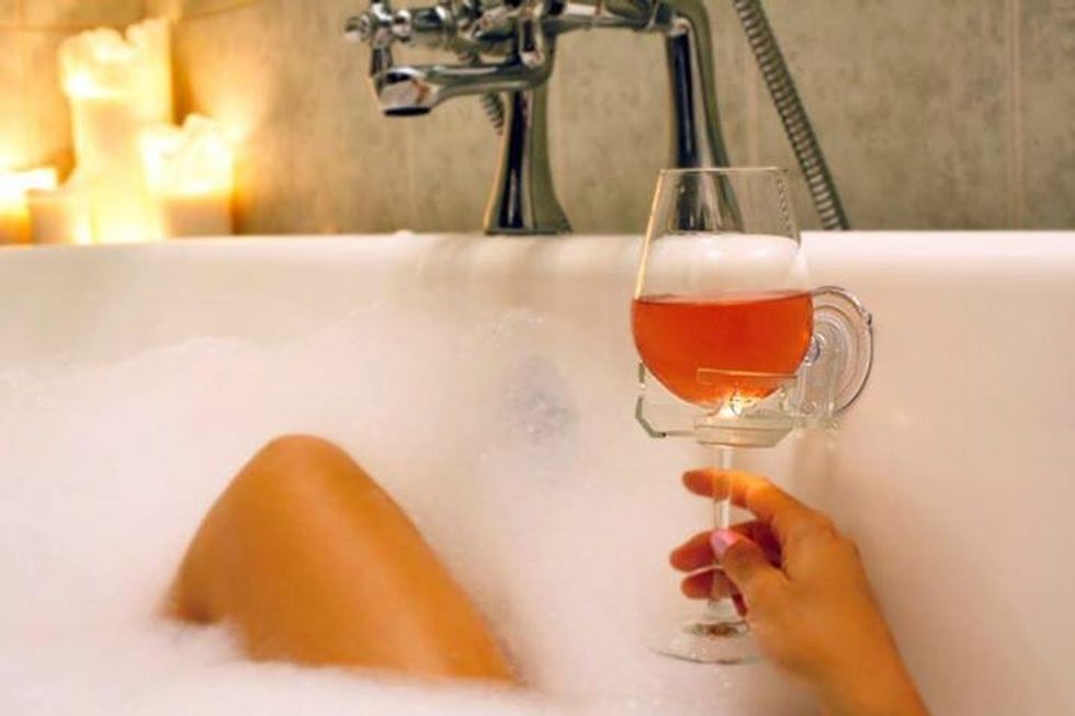 This contraption gives you a handy cup or snack holder while you are in the bath. If you ever didn't know you needed something, it is this, now all you need is a drink.