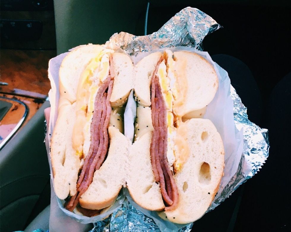2. Taylor Ham, egg, and cheese on an everything bagel with salt, pepper, and ketchup