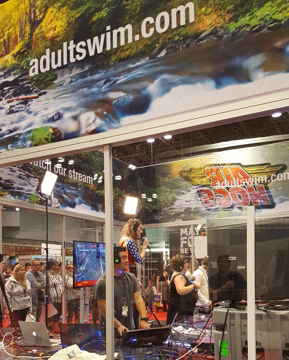 A few podcasts and stations were live-streaming in an effort to engage both their listeners and the crowds at NYCC. In this photo, Adult Swim booth was hosting karaoke.