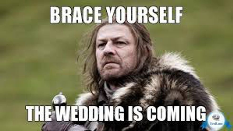 Weddings. A big party to celebrate two people who are in love. Some are fun while others maybe not so much. Either way you show up in nice maybe a little uncomfortable clothes, eat some kind of fancy dinner, and wish the happy couple good luck. Here are the 11 thoughts you may have during a wedding.