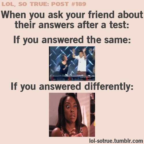 You compare your answers to your friends and it turns out that everyone’s answers differ and no one thinks they passed.