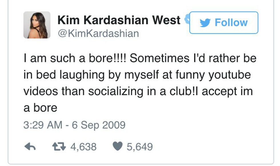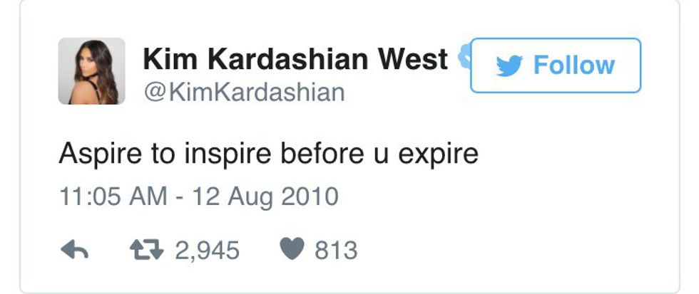 Kim K has put out her fair share of tweets that you kids would probably call "goals." I took it upon myself to do some investigative journalism and dig up a few of her older (but never forgotten; thanks, Internet!) tweets, straight from Mrs. West herself. You're welcome.