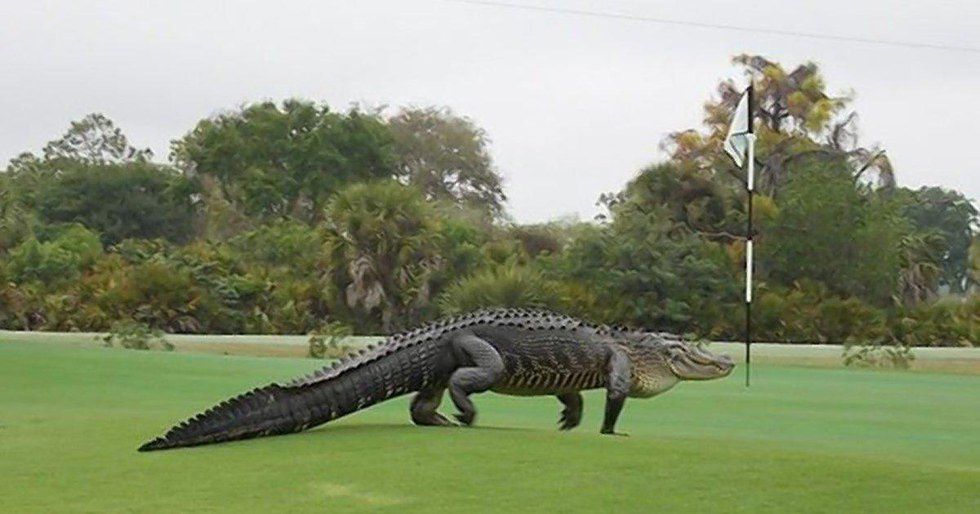 If you're from Florida, you have come to accept that there is an alligator in literally every body of water in the state. Even in that tiny little conventional pond in your back yard. Don't forget about that dinosaur-looking-gator found roaming a golf course Florida a few weeks ago. That thing would swallow me and the golf cart whole.