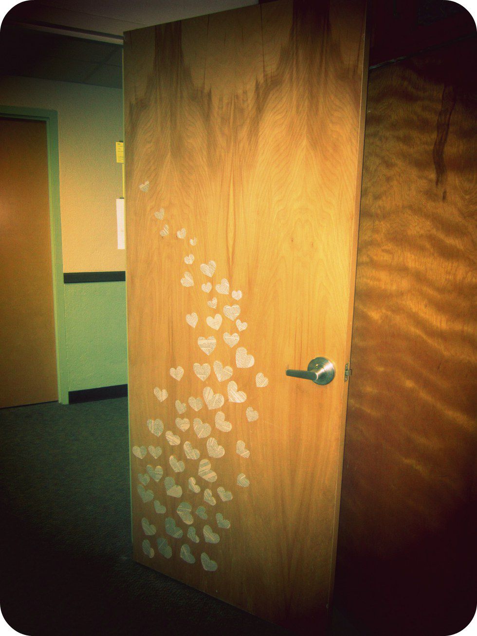 This can be done with anything from painters tape, washi tape, paper, or anything. This makes your entry way a little different than others and hard to pass up as you are getting used to the location of your new room.
