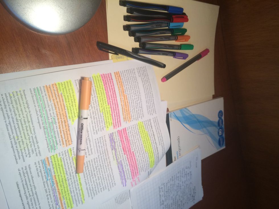 Keeping a nice pen is great, but we are talking about trying to stay awake. Get at least two different types of writing utensils and keep switching between them. For example, writing a few points with a pen and a few others with a pencil then repeat. If this seems to tedious, then keep a highlighter and highlight after you jot down a point. Switching between a pen or pencil and highlighting not only helps me stay attentive but also encourages active note taking. Not to mention, color coding is a form of effective note-taking and helps in memorization.