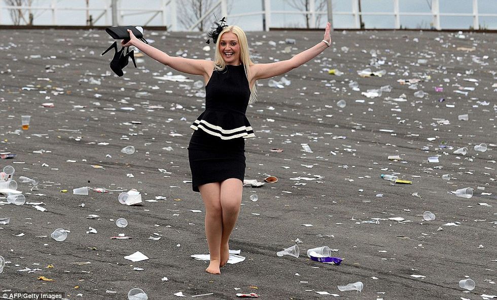 It doesn't matter if you're walking two miles, keep your shoes on. The sidewalk is gross and beauty is pain.
