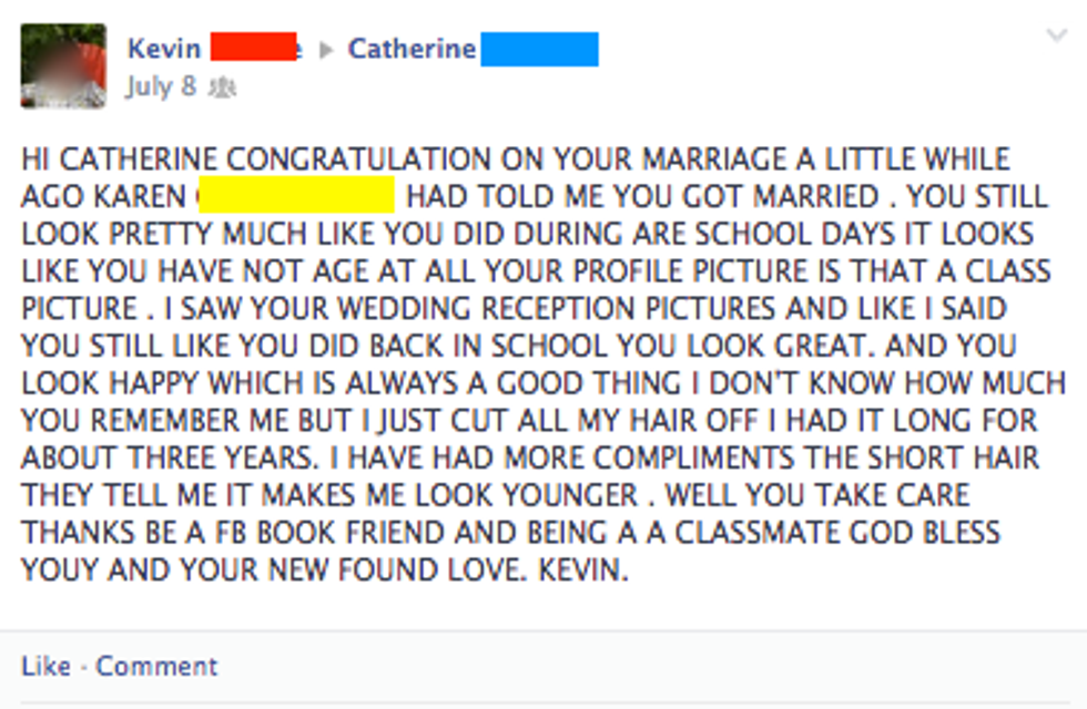 I'm very happy that these two got the chance to reconnect, especially since Catherine was "A A CLASSMATE." Maybe next time just tone it down a bit, Kevin.