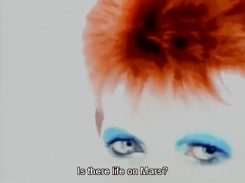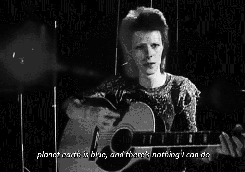 "There's a starman waiting in the sky / He'd like to come and meet us / But he thinks he'd blow our minds"