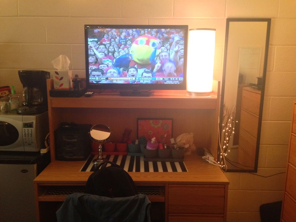 Even if you don't have time to watch TV at school, watching a show or two before bed is really relaxing. Even having the TV visible makes me feel like I'm at home in my living room.