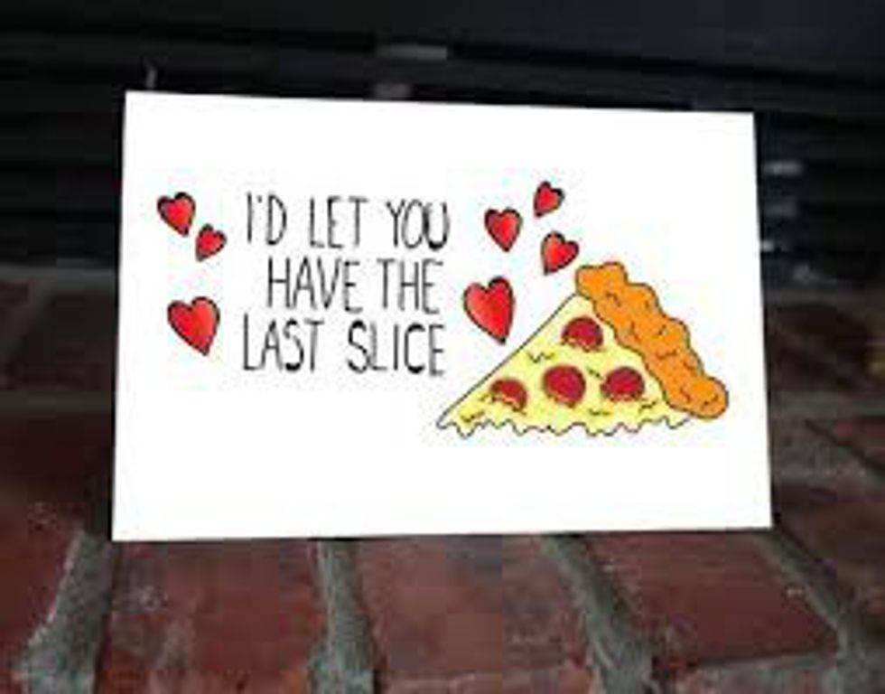 This might not be universal but let me tell you, if I am eating something (pizza, cheesecake, regular cake, etc) and I save you the last piece that is love.