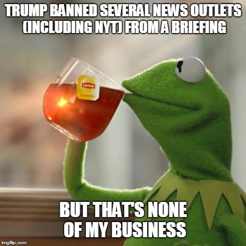 On February 25, Trump banned many news outlets (CNN, The New York Times, Politico, and the Los Angeles Times) from attending a briefing. Not so surprisingly, outlets that are seen as more friendly to the Trump administrations were allowed in (Breitbart, The Washington Times, and the One America News Network).