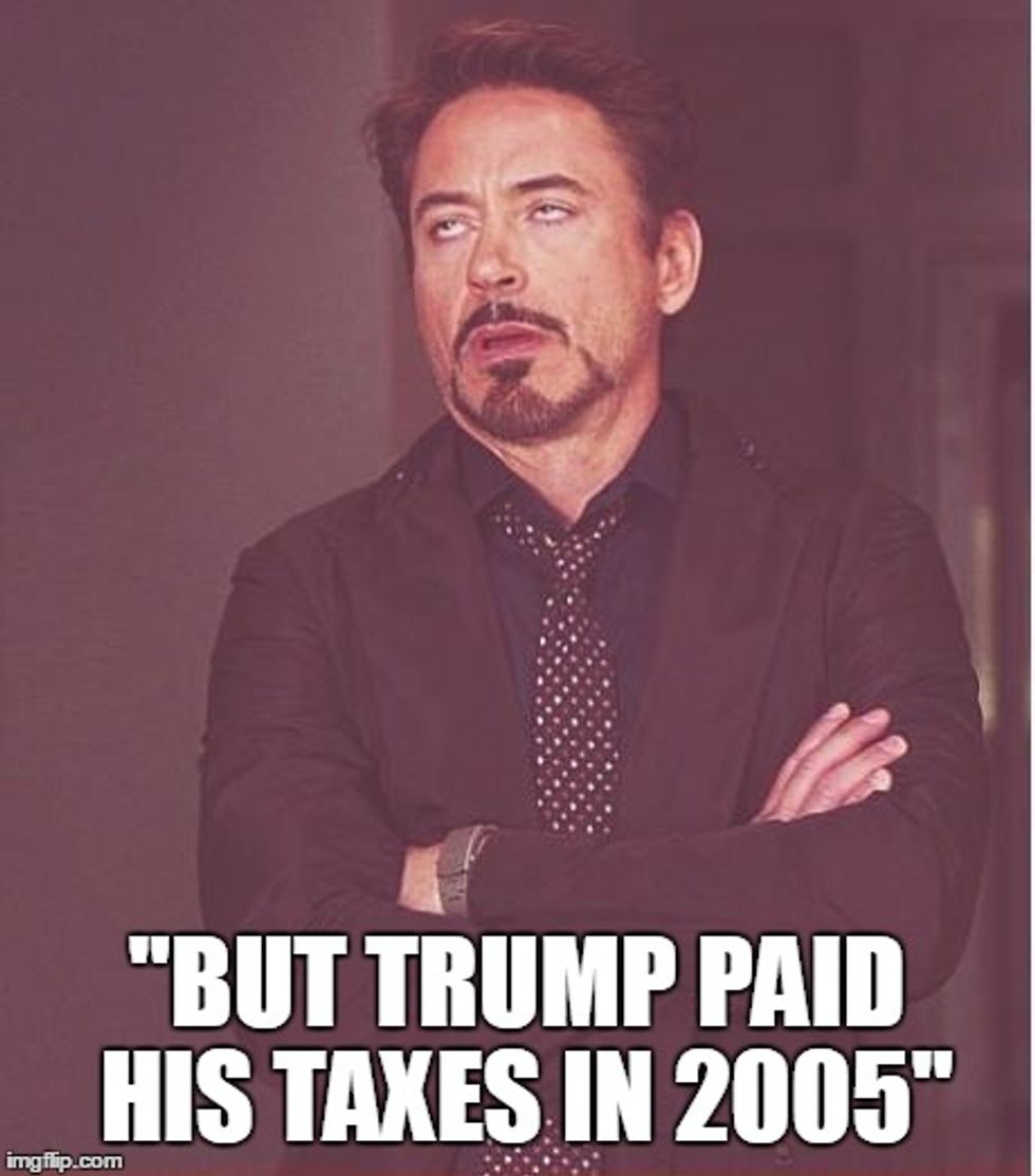 In week 8, Maddow made Trump into this great guy for paying his taxes... in 2005. This proves nothing, Maddow! He paid his taxes over 10 years ago.