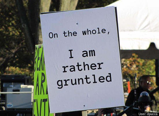 Oftentimes people ask, if I can be disgruntled then can I be gruntled? In the 1930s, the word gruntled evolved from its original meaning of "to grumble or complain" to also mean "to be put in good humor." This is known as back-formation because gruntle's new meaning formed based on the word disgruntle.