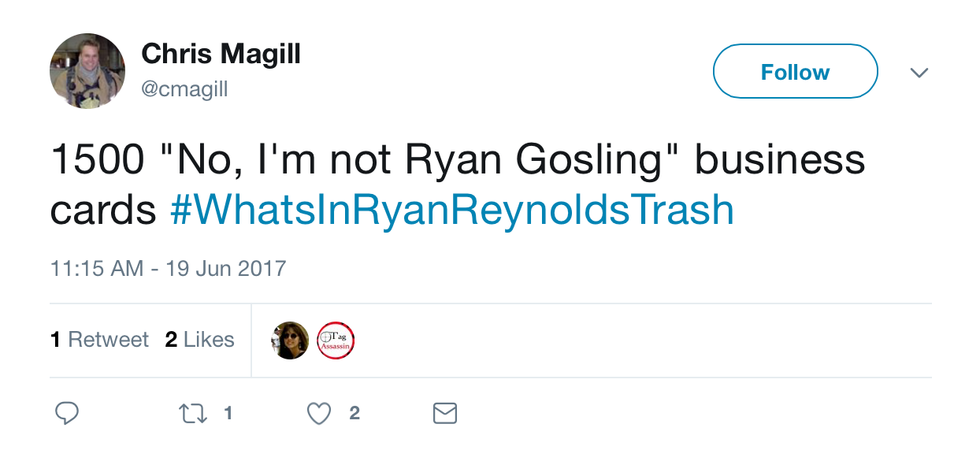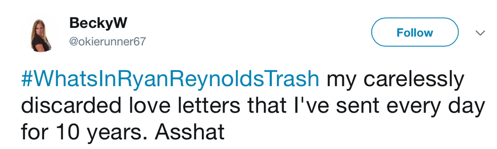 Ah, Twitter. What are you good for, if not amusing hashtags? A little while back, I saw a very specific, very intriguing hashtag that was trending: #WhatsInRyanReynoldsTrash. Now, I’m not a crazed Ryan Reynolds fan, but homeboy is funny AND attractive, so I do watch his movies now and then. I mean, come on. Any self-respecting rom com fan knows about The Proposal. So how could I not be interested in what people were saying about Ryan R.? Or his trash, rather. Here are 11 #WhatsInRyanReynoldsTrash tweets that gave me a good giggle.