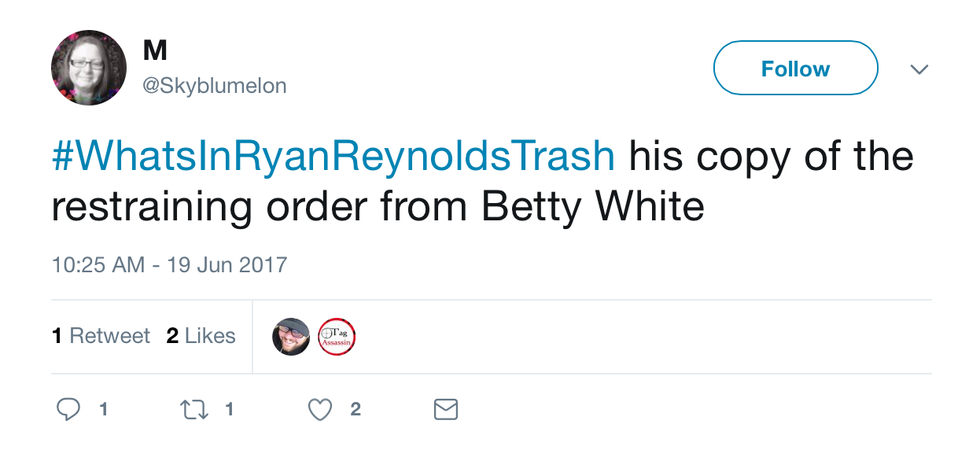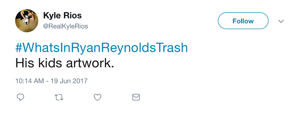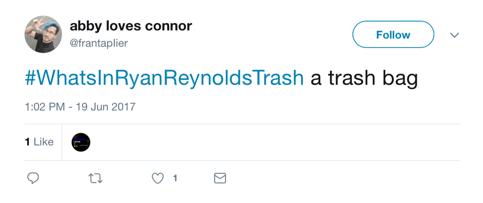 To end off this article, I thought I’d leave you with this tweet from the very lovely, very realistic Abby. You’re right, girl, he probably DOES have a trash bag in his trash. But you never know. Ryan Reynolds likes to live life on the edge. And that may mean going sans trash bags.