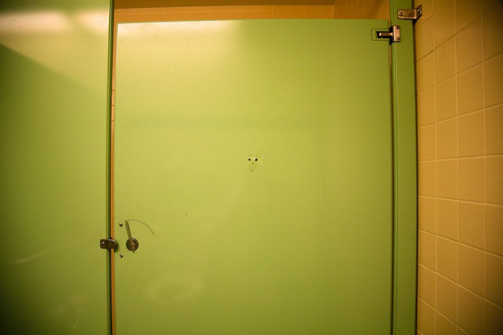 9. Making eye contact between the stall doors.