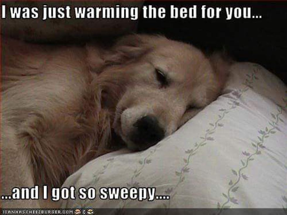 Aww, this melted my heart. When I get a golden retriever, he or she would be able to sleep on his or her own bed. The sort of smooshed face the dog is making reminds me of how you can stretch or smoosh a golden retriever's face to make them look funny. I'll save some of those pictures of part two of greatest golden retriever memes!