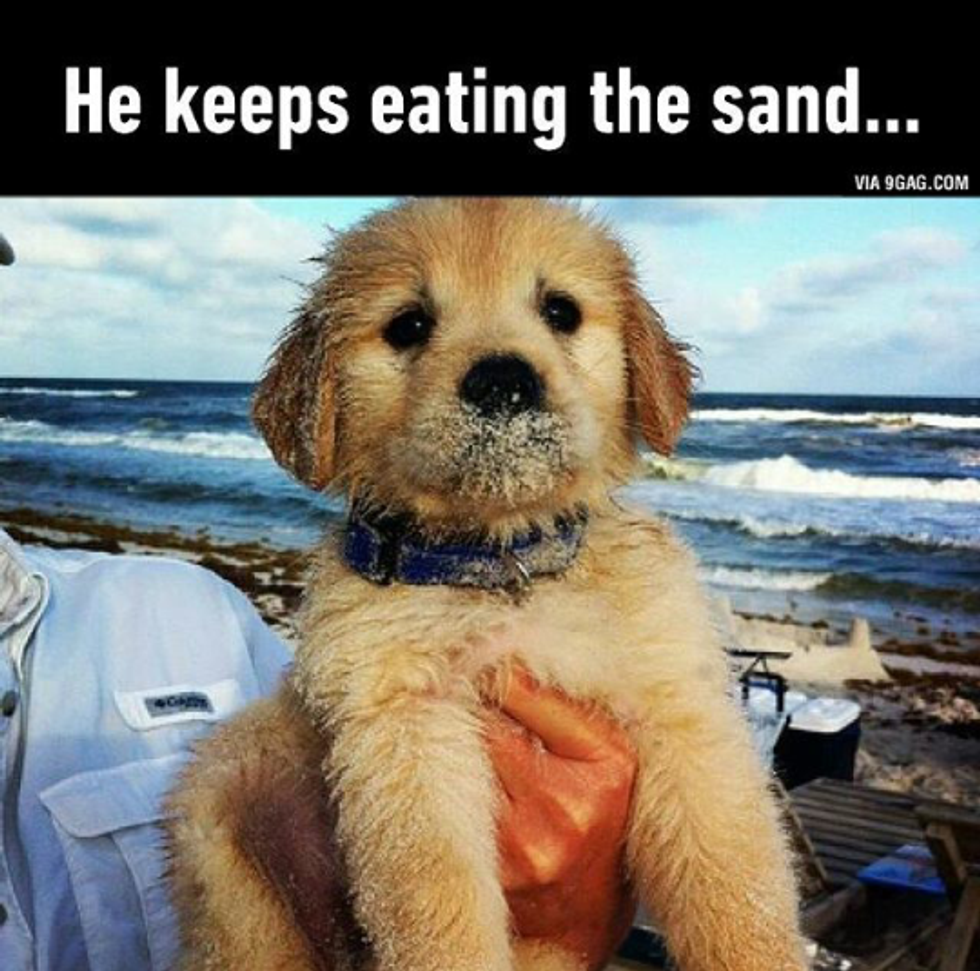 I had a German shepherd that would always try to eat the waves. A little bit less harmful than eating sand, but still not good. I live in Hawaii and go to the beach often, so a dog that eats sand could become a problem. I would soon have a sand pooping machine instead of a dog.