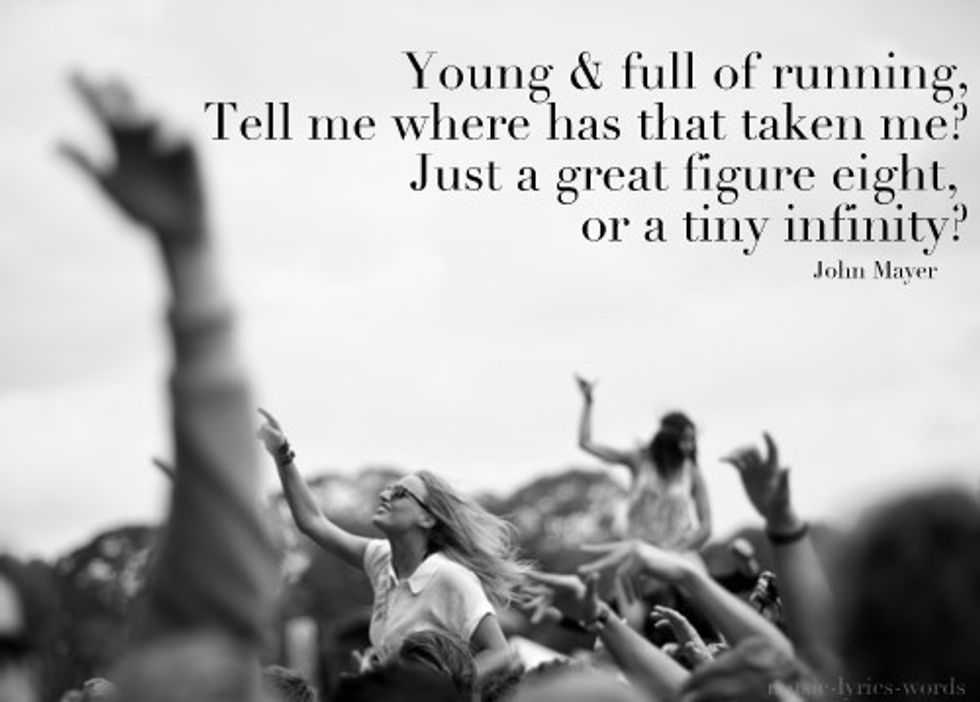 John Mayer is on tour right now and my jealousy is through the roof for anyone who is in attendance. As a long-time, avid listener, I have gotten through the best and worst times with him alongside. He arguably has some of the most comforting and invigorating lyrics that seem to say just the right thing at just the right time. So thank you, John Mayer, for some angelic lyrics to help me get through this thing we call life.