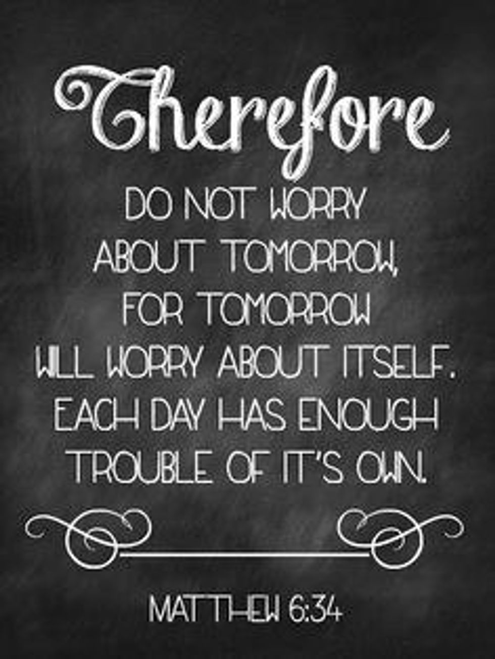 For the same reason, we cannot worry about what tomorrow brings but rather focus on the issues at hand. Take each day at a time and trust God with His plan.