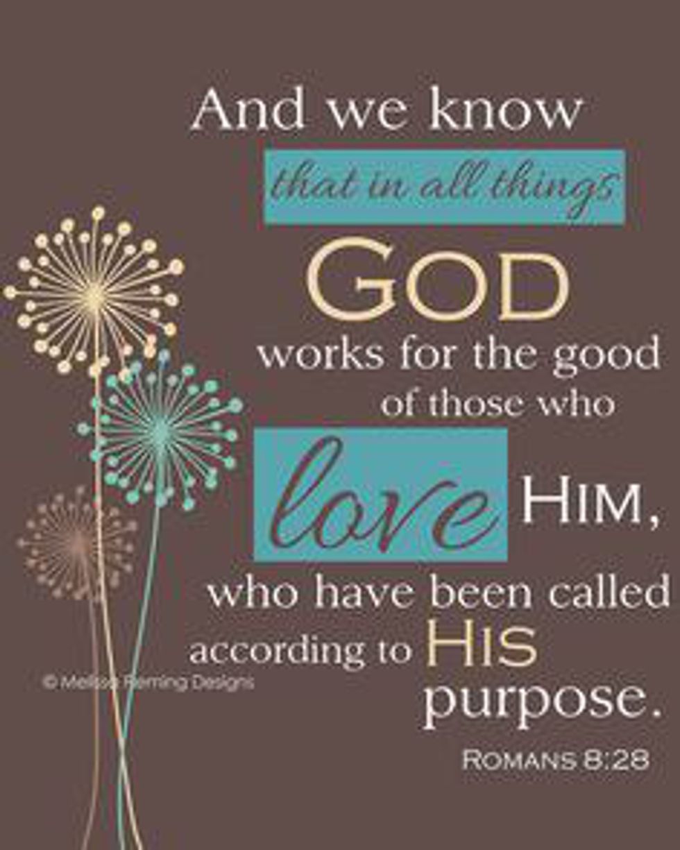 God makes ALL things work for the good of people who have been called. During the good times, it is easy to see how God makes things work for our benefit. The difficult times is when it can be impossible to understand how it is going to help us later on. However, it will. Maybe not at that moment, but in the future, God may have something better planned.