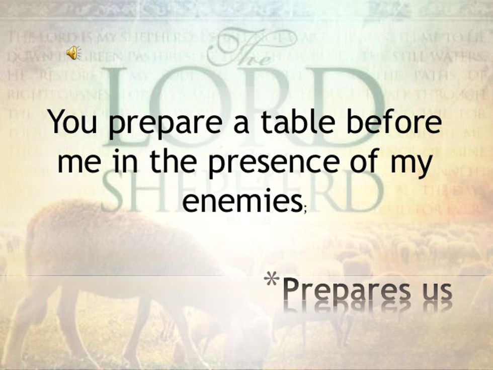 “... Thou preparest a table before me in the presence of mine enemies: thou anointest my head with oil; my cup runneth over. Surely goodness and mercy shall follow me all the days of my life: and I will dwell in the house of the LORD forever.”