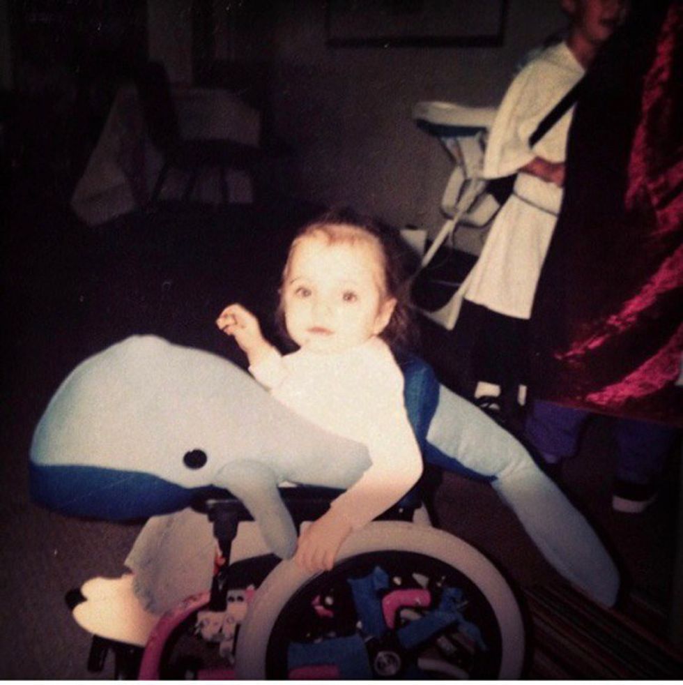 Growing up, my mom always pulled it out of the bag when it came to my Halloween costumes. Most of the time the costumes were handmade, but if they were store bought, she always aimed to add her own personal touches. My mom also liked to include my wheelchair into the costume, whether it be the main focus or decked out to match with what I had on. For example, one Halloween year she turned my chair and I into a whale. Yeah, that's right. A whale. Look, I even have proof: