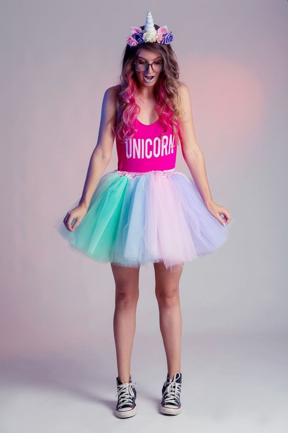 Unicorns are also in. This is such a fun and simple costume because there are so many variations to it. You could wear a unicorn onesie, rainbow tutu skirt with a plain t-shirt or an all-white outfit with a variety of different unicorn horns to choose from.