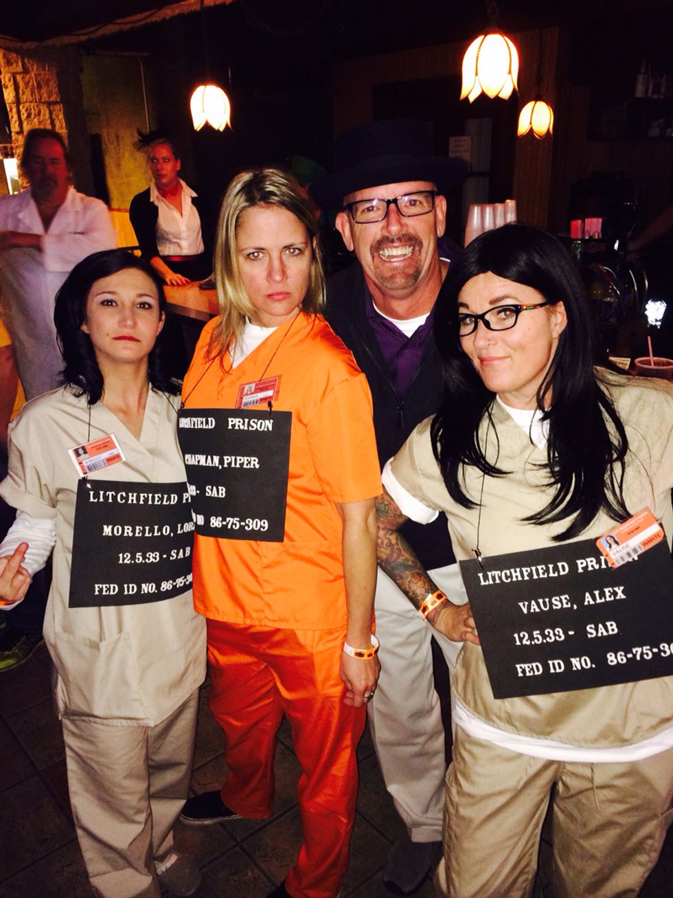 Grab your girls and become the cast of "Orange is the New Black." This costume is super simple because all you need is either an orange or tan jumpsuit. The more details you are willing to add, the better the costume.