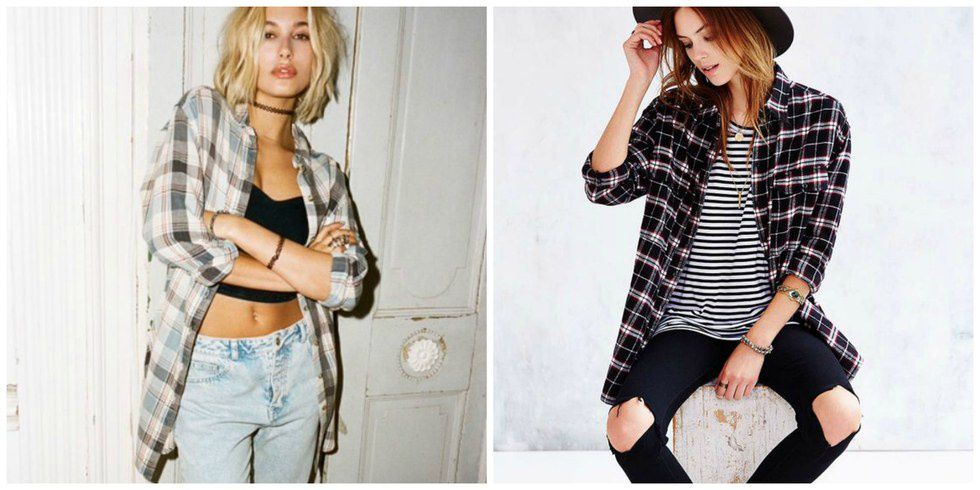 7. Flannels: Another timeless trend, flannels are cozy and cute, and can be styled for any season. The flannel is the trademark of '90s grunge style. Wear it by itself, over a striped or solid top, or tie it around your waist.