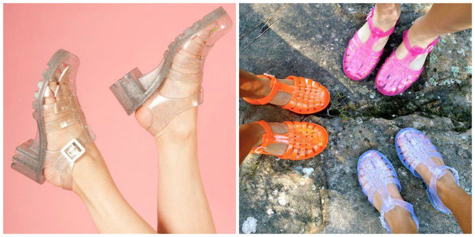 10. Jelly sandals: If these don't make you nostalgic for the '90s, nothing will. Jellies are back with quirky new colors and styles. Paired with socks or bare feet, these shoes will never fail to add some pep to your step.