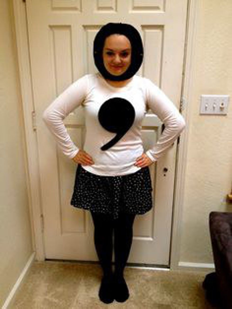 There are few issues that get an English major more heated than the ongoing debate over whether or not the Oxford Comma is "necessary" when writing out a list. If you want to represent Team Oxford Comma, all you need is a plain white sweater some black felt. Extra pun points if you add a pair of oxford shoes to the outfit as well!