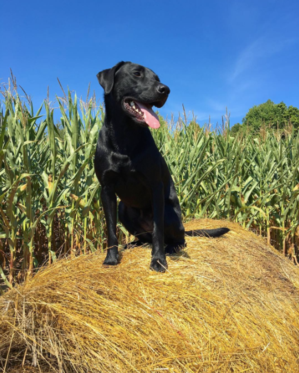S and M had some fun down on the farm yesterday!🌽☀️ It was such a beautiful day for some hay bale and corn stalk exploring 😊☀️🌽 #dogsofcle #ohiodogs