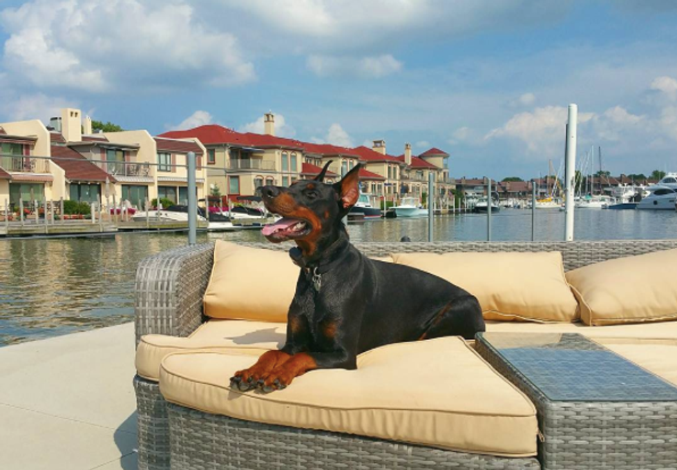 Jax is a Doberman who loves playing fetch, sunbathing, or relaxing on Lake Eire.