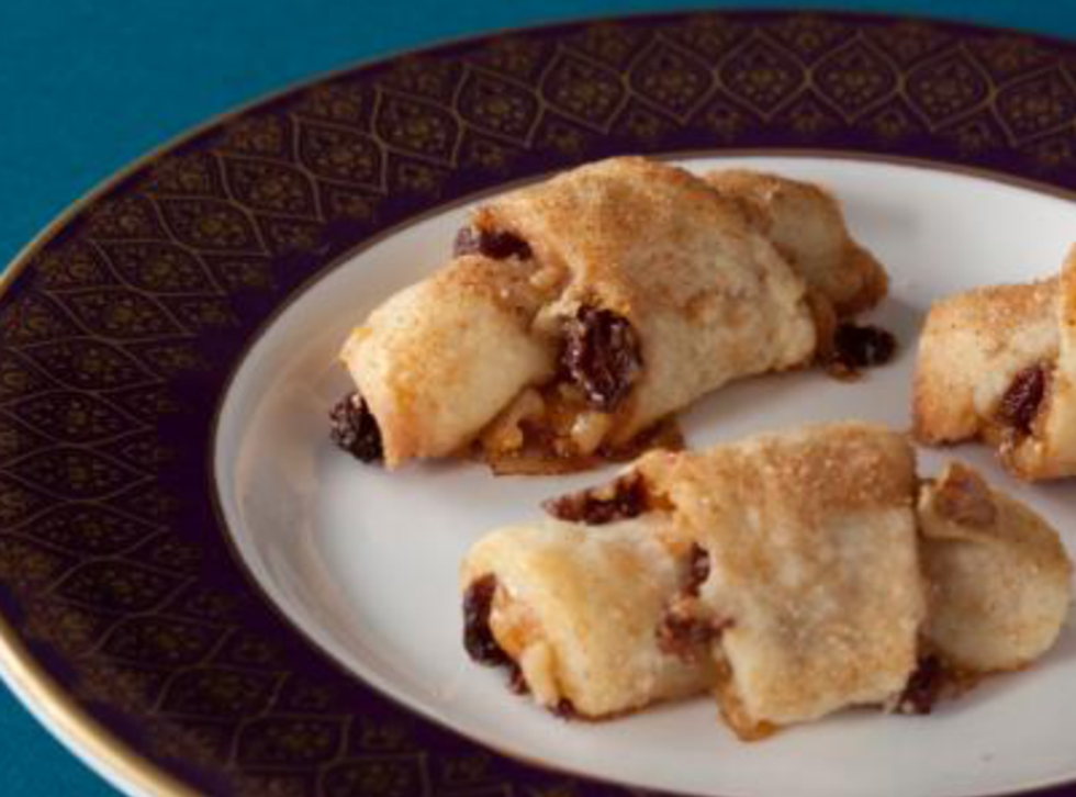Rugelach is a cookie you make around the Jewish holidays and they do not disappoint. It is a fairly plain dough that is filled with either jam and nuts or chocolate spread. The ones with jam and nuts usually have a cinnamon sugar sprinkle on top, while the chocolate spread cookies have powdered sugar on them.
