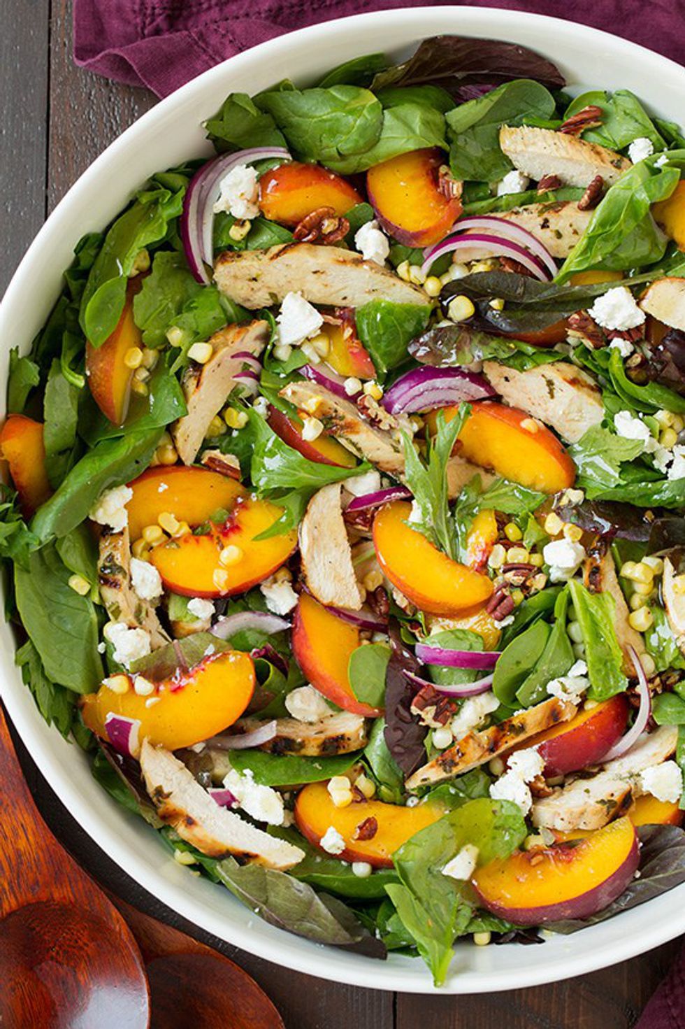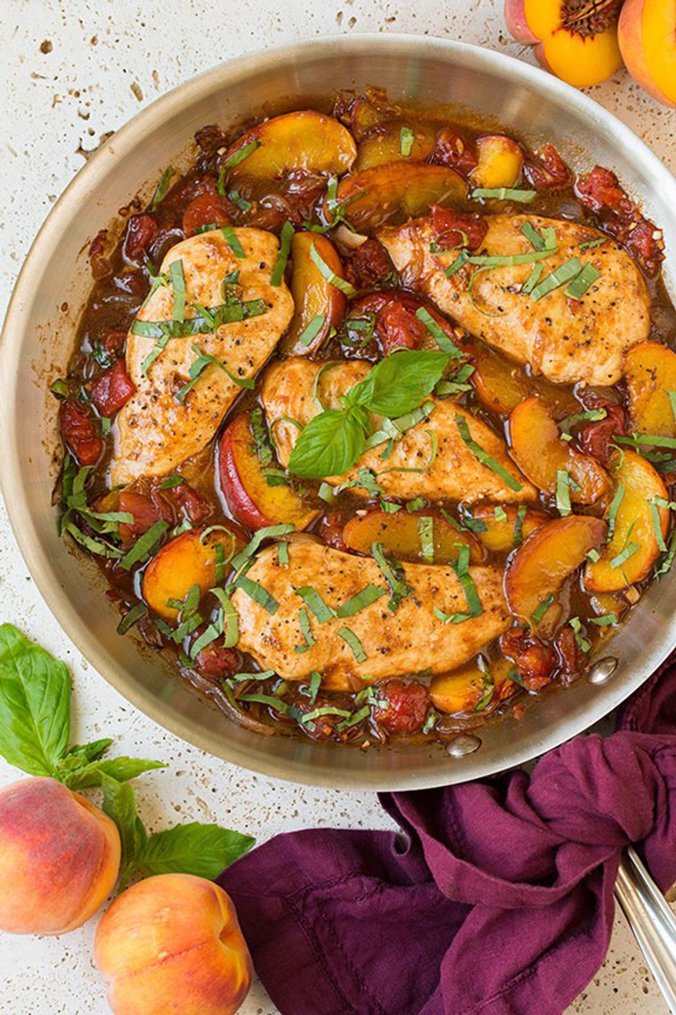 This weekend I went to a peach festival and there were so many delicious peach foods there! When I think of recipes with peaches I usually only think of peach cobbler or peach pies, but there are so many more! I was so amazed at how different recipes you could make with peaches, so I went home and looked up peach recipes and found so many recipes, and not just desserts! Here are twelve of the most tasty peach recipes for you to make this summer: